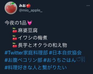 スポンサーリンク みお🍎さん 日々のお料理を呟かれてます♪😋 スポンサーリンク おいしぃTwitter X 2021.06.252021.06.26 スポンサーリンク スポンサーリンク みお🍎さん スポンサーリンク みお🍎さん #お野菜の使われ方が魅力的 みお🍎さんのカレー大好き💖 みお🍎さんのお料理がいいね💖 みお🍎さん ありがとう♪