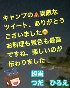 スポンサーリンク おいしぃTwitter紹介者更新情報#11◈◇risarisa◈◇さん おいしぃキャンプ飯😋 スポンサーリンク おいしぃTwitter紹介者更新情報 X 2021.07.23 スポンサーリンク スポンサーリンク ◈◇risarisa◈◇さん のTwitter スポンサーリンク ◈◇risarisa◈◇さん テントを張る😁 ◈◇risarisa◈◇さん キャンプ飯🍖 りさちゃんお肉を焼く😁 カルボナーラ、野菜炒め、ご飯も炊けたよ😁 食後はまったり☕️ 素敵な朝日☀️ ◈◇risarisa◈◇さんへ
