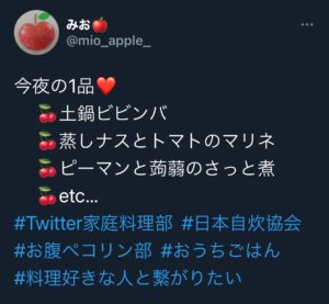 スポンサーリンク おいしぃTwitter紹介者更新情報#8 みお🍎さん 今夜の一品 スポンサーリンク おいしぃTwitter紹介者更新情報 X 2021.07.11 スポンサーリンク スポンサーリンク 2021/07/09 みお🍅さんのツイートより スポンサーリンク 今夜も美味しそう😁 お野菜たっぷり 土鍋ビビンバ 蒸しナスとトマトのマリネ ピーマンと蒟蒻(こんにゃく)のさっと煮